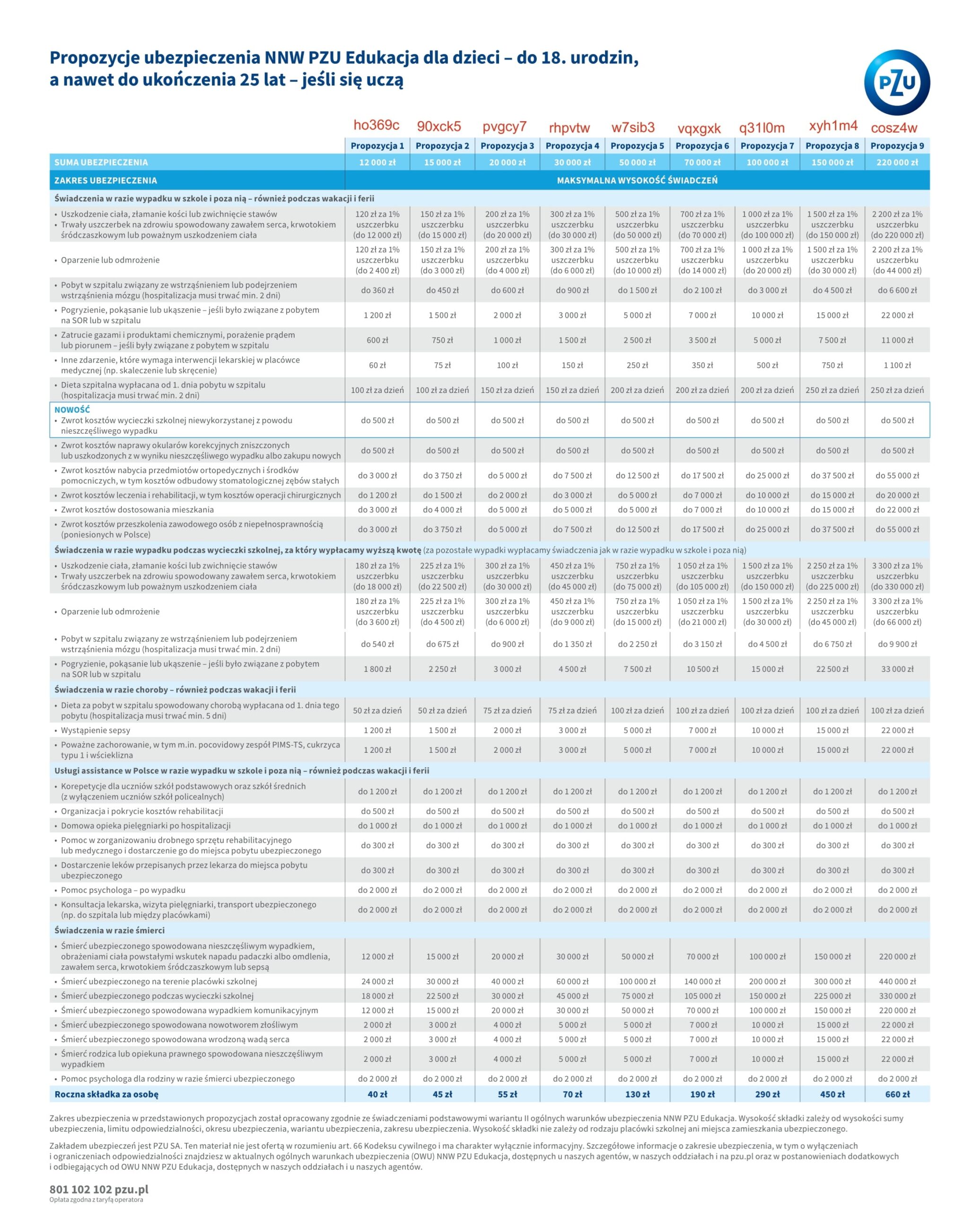Ubezpieczenie jest dostępne dla dzieci, młodzieży oraz studentów do ukończenia 25 lat, bez wykluczenia sportów zawodowych.